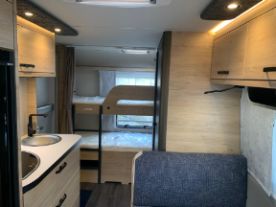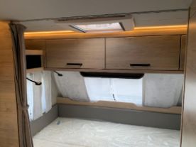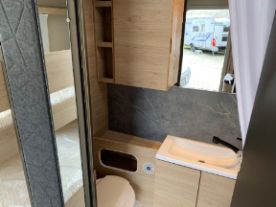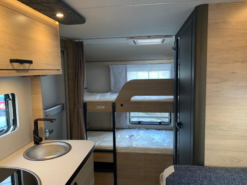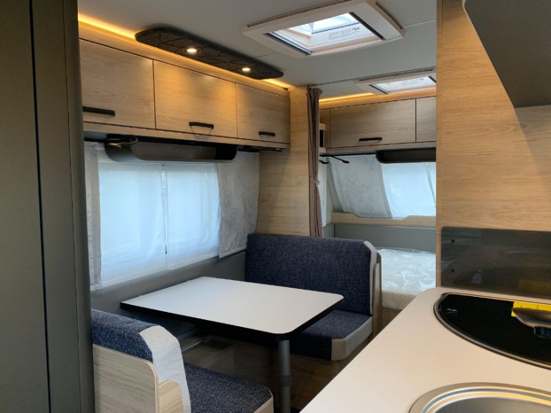 Accessori | Tetto in vetroresina antigrandine, porta d´ingresso da 60 cm, riscaldamento 3000 calorie, pareti anticondensa, reti a doghe, materasso pregiato. Pacchetto Exterieur: cerchi in lega, pareti laterali in lamiera liscia bianche, copritimone. Pacchetto Convenience: piedini di stazionamento rinforzati, giunto di sicurezza stabilizzatore, termoventilazione, zanzariera porta d´ingresso, oscuranti e zanzariere su tutte le aperture. Pacchetto Feel Good: boiler, serbatoio acque chiare da 45 litri, impianto doccia bagno, miscelatore doccia con supporto e tenda doccia. Fascia di luci a LED sui pensili, guardaroba, 2 luci per la notte con interruttore, moquette, tappezzeria DUSK. € 28.098,00 SU STRADA 10 anni di garanzia per le infiltrazioni |