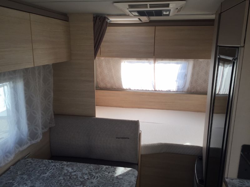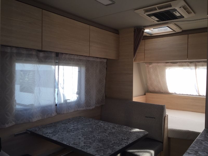 | Accessori | Dotazione completa: stabilizzatore AL-KO, ruota di scorta, caravanstore, frigorifero grande, climatizzatore Dometic, riscaldamento con termoventilazione, boiler, oscuranti e zanzariere, zanzariera porta di ingresso, reti a doghe, presa esterna gas. |