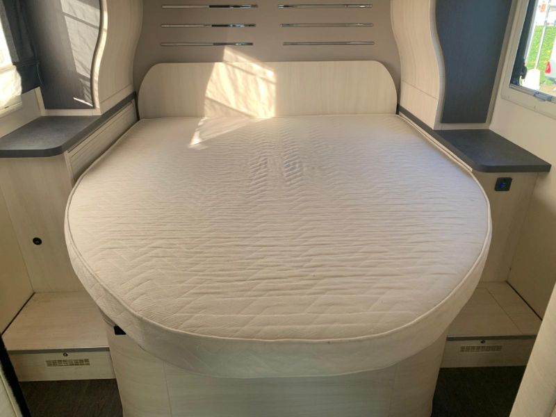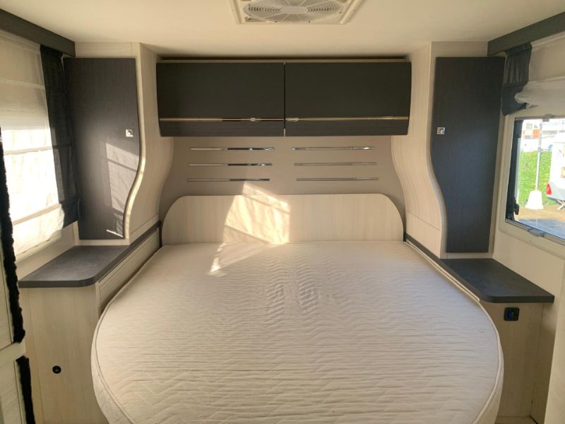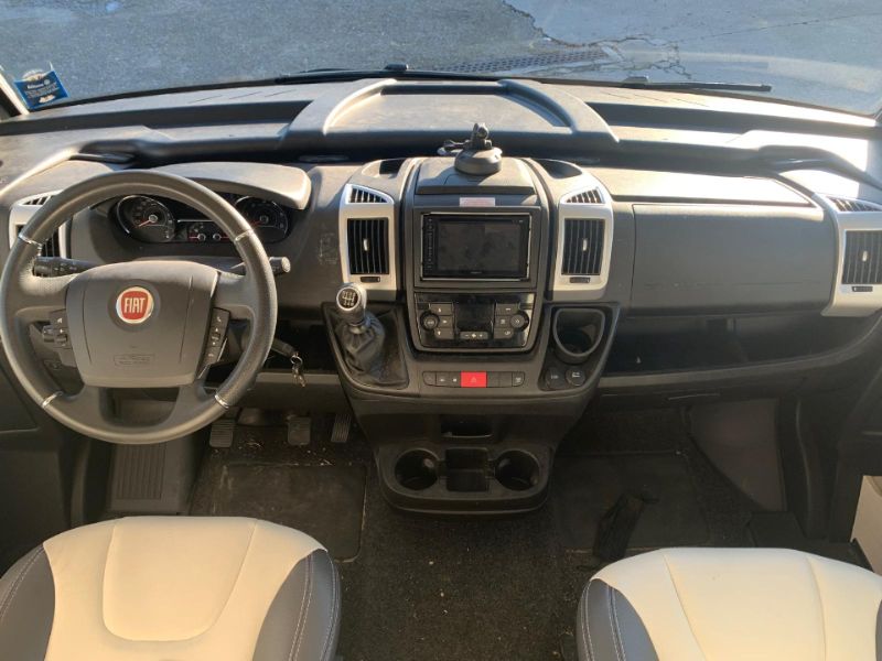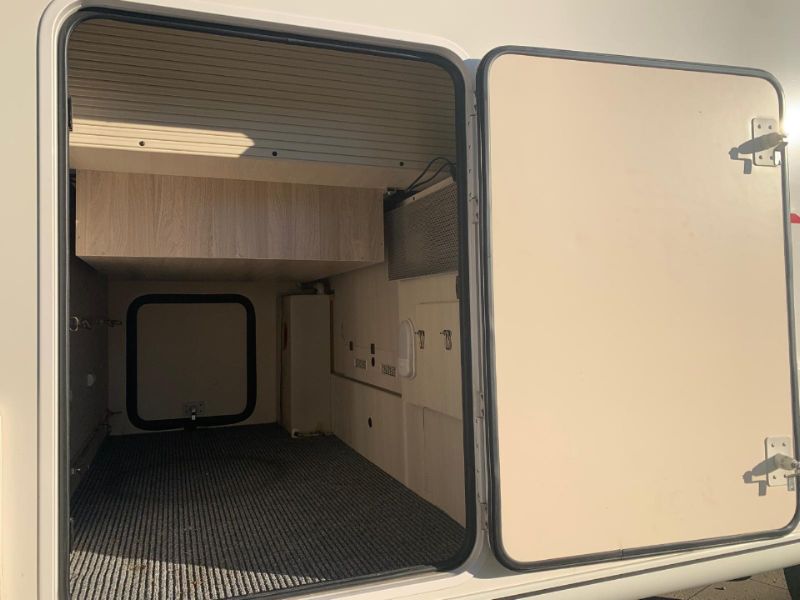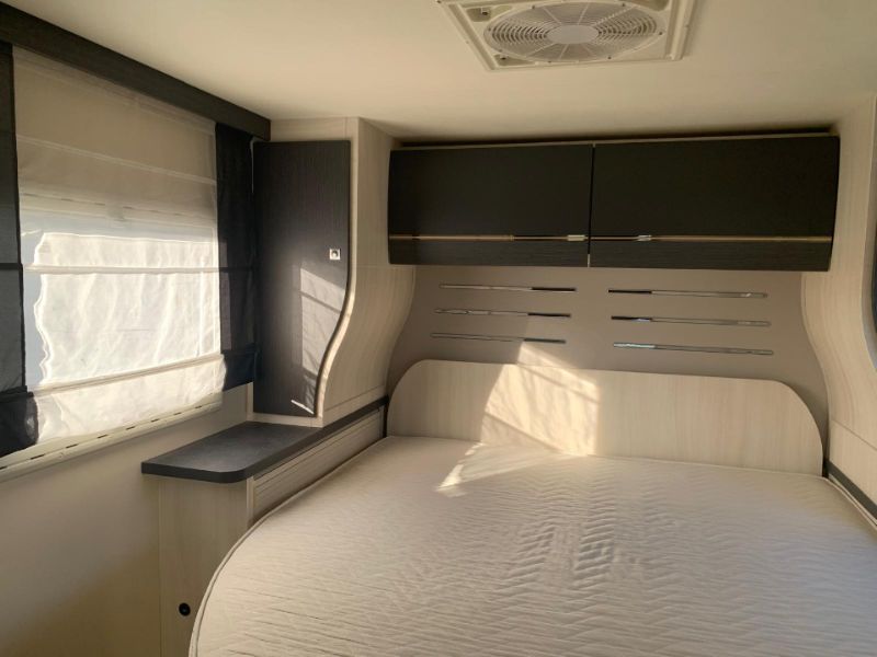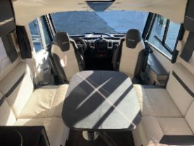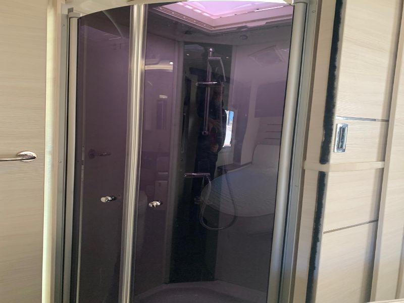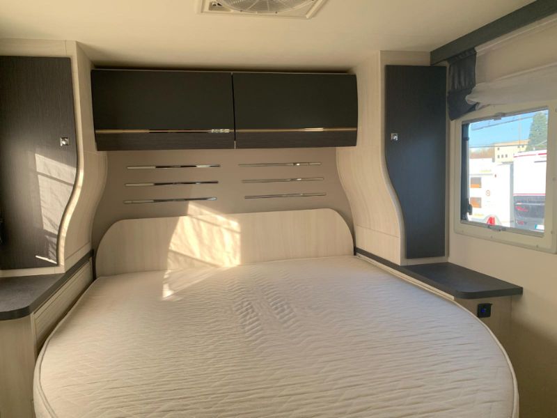 Dotazione completissima: completamente in vetroresina, meccanica Fiat Ducato 160 cv, climatizzatore automatico in cabina, cruise control, autoradio con retrocamera, cerchi in lega da 16 pollici, climatizzatore in cellula, generatore di corrente 2.5 Kw, due pannelli solari, piedi di stazionamento idraulici autolivellanti, sospensioni pneumatiche, turbo vent in camera e in toilette, antenna tv satellitare automatica, tv, frigorifero con cella freezer separata, doppio serbatoio acqua potabile interno, riscaldamento Truma Combi D. |