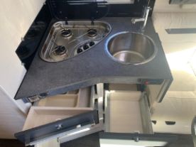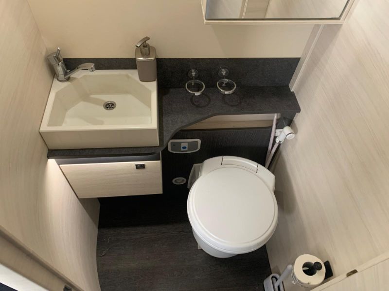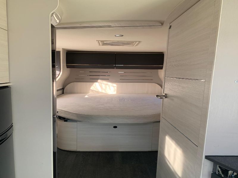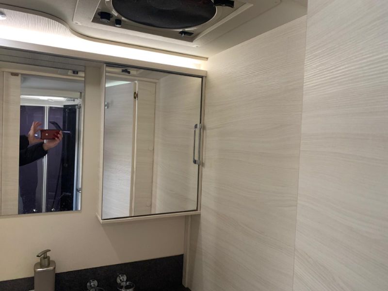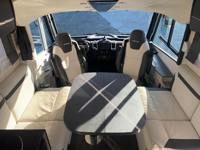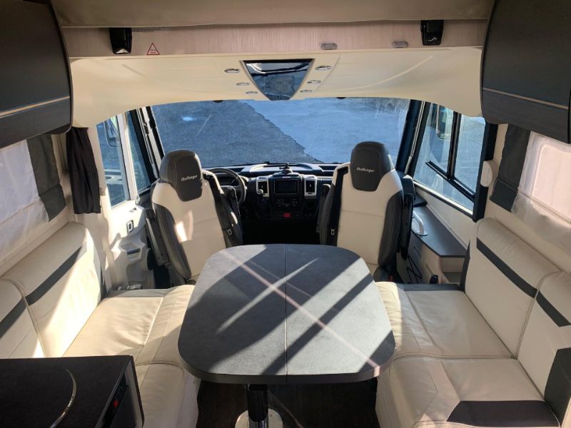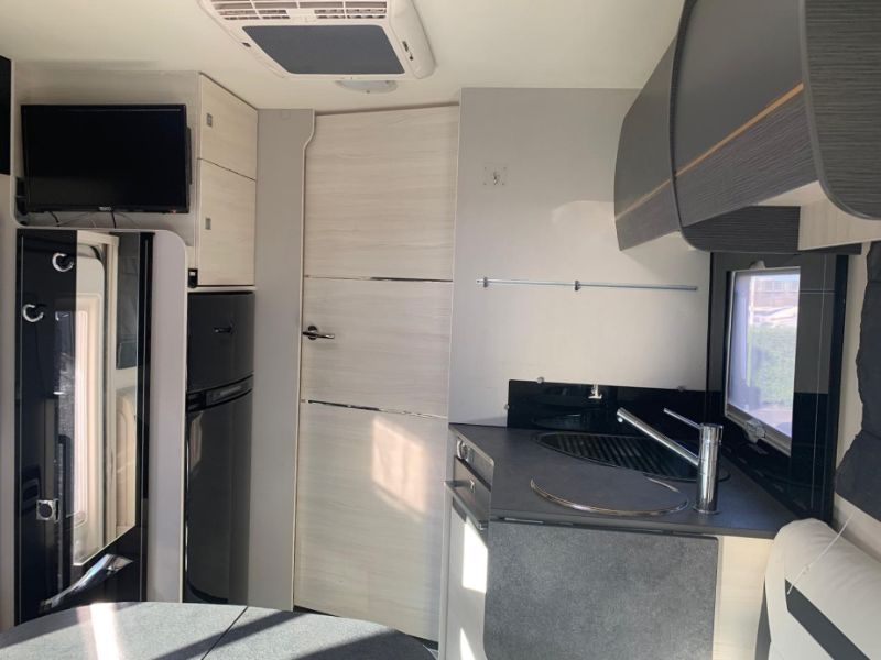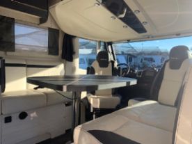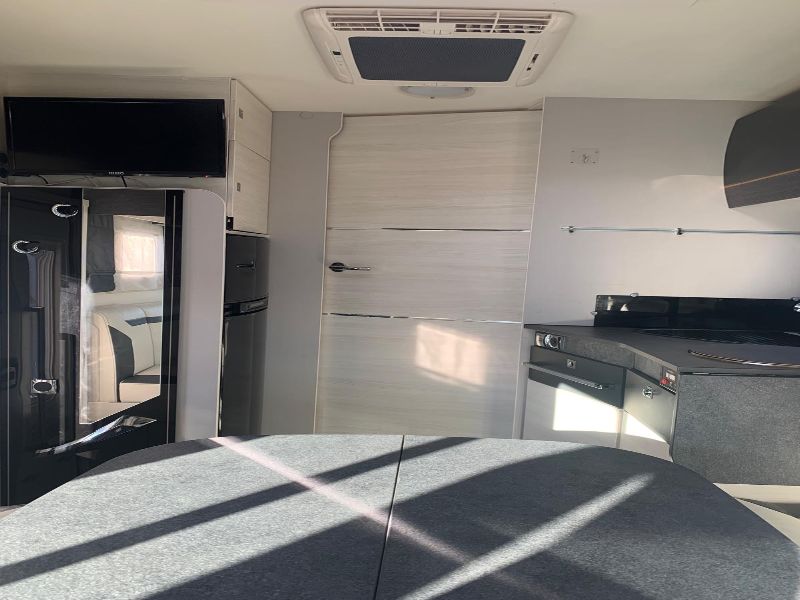 Dotazione completissima: completamente in vetroresina, meccanica Fiat Ducato 160 cv, climatizzatore automatico in cabina, cruise control, autoradio con retrocamera, cerchi in lega da 16 pollici, climatizzatore in cellula, generatore di corrente 2.5 Kw, due pannelli solari, piedi di stazionamento idraulici autolivellanti, sospensioni pneumatiche, turbo vent in camera e in toilette, antenna tv satellitare automatica, tv, frigorifero con cella freezer separata, doppio serbatoio acqua potabile interno, riscaldamento Truma Combi D. |