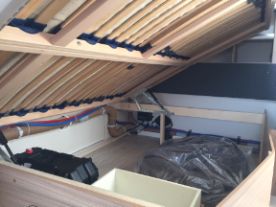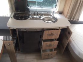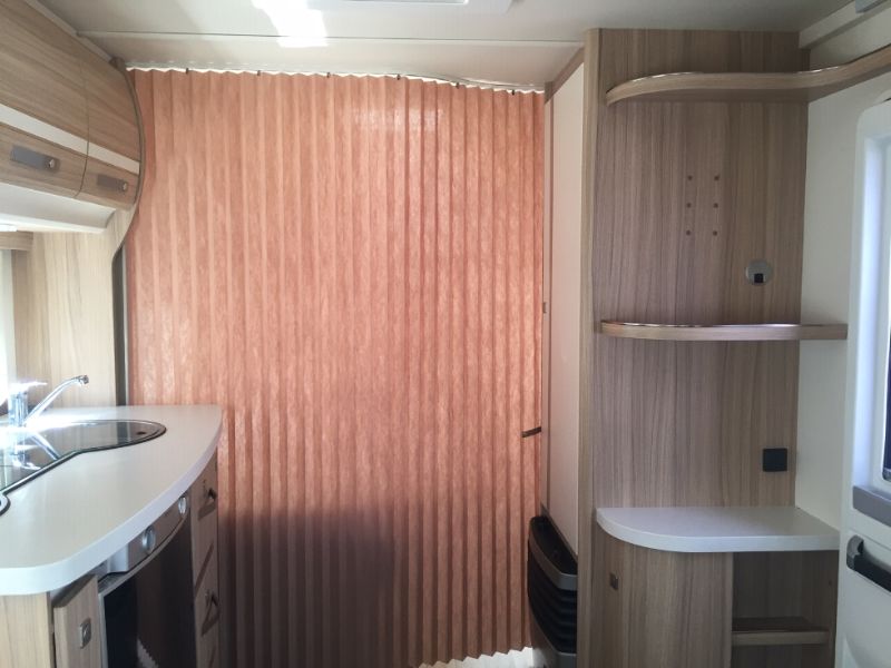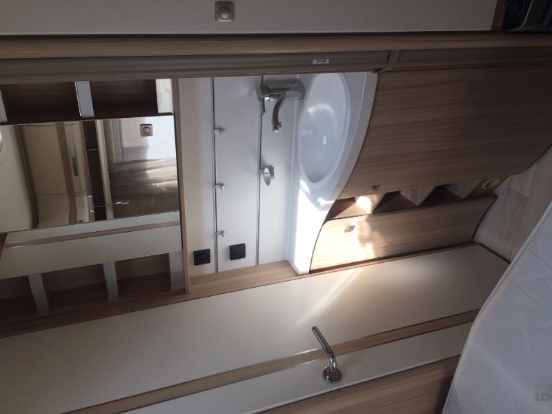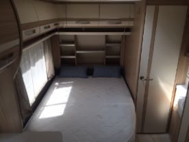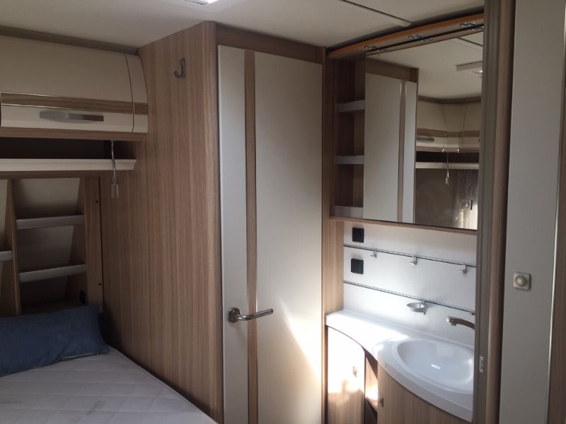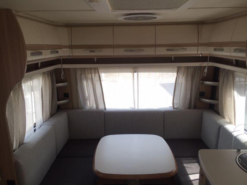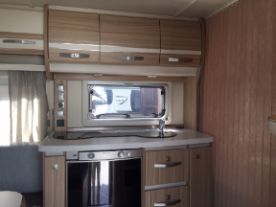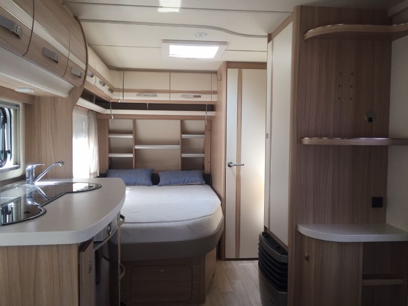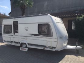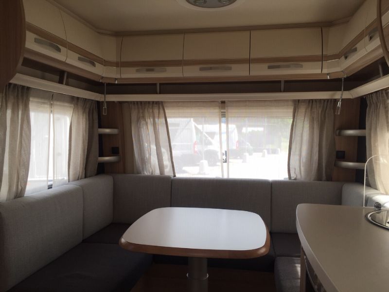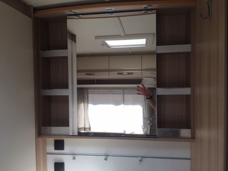| Accessori | La dotazione prevede: telaio AL-KO con stabilizzatore, piedi di stazionamento rinforzati, tetto calpestabile, oscuranti e zanzariere, reti a doghe ortopediche doppie nella parte pił pesante del corpo, riscaldamento con termoventilazione, boiler, illuminazione led, luce esterna led, movimentatore, pannello solare da 150 w, attacco diretto acqua, ruota di scorta. |