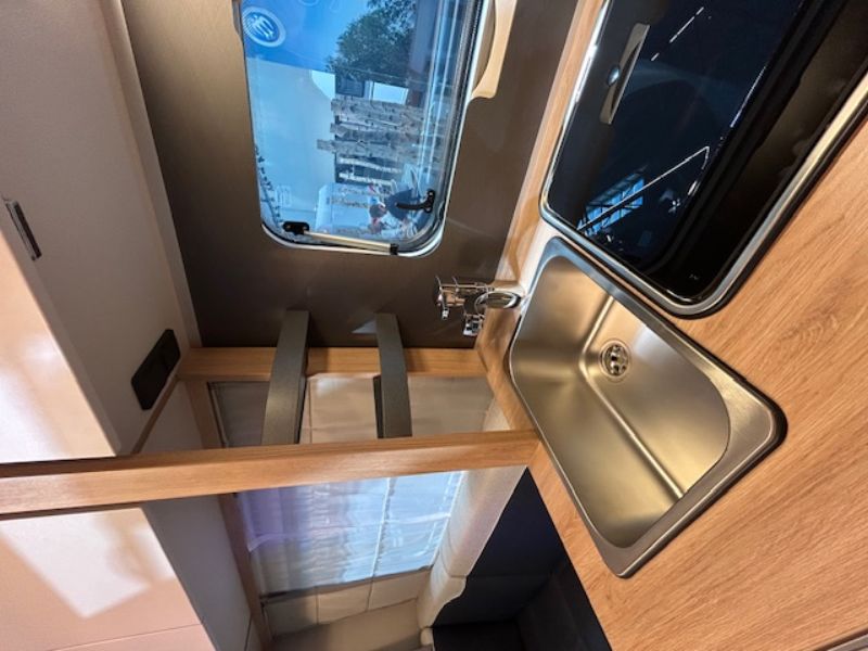 | Accessori | Dotazione completa: tetto in vetroresina antigrandine, telaio AL-KO, stabilizzatore AKS, ruotino con indicatore di peso, piedi di stazionamento rinforzati, cerchi in lega, porta ruota di scorta, ruota di scorta incluso cric, impianto doccia, boiler, riscaldamento canalizzato, pareti e mobili anticondensa, oscuranti e zanzariere, zanzariera porta di ingresso, illuminazione ambiente led, luce esterna led. € 26.675,00 SU STRADA |